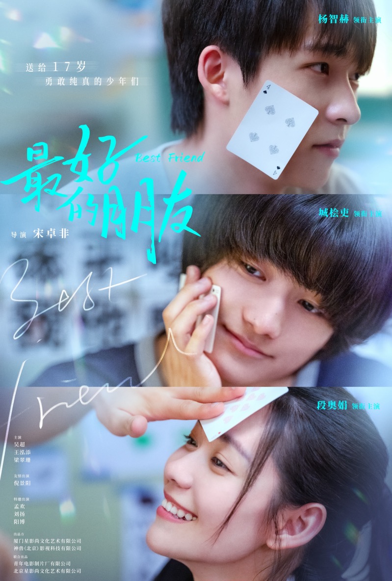电影《最好的朋友》讲述了性格孤僻的十七岁高中生赵飞(杨智赫 饰),在与同学夏秋(段奥娟 饰)相处的过程中偶然结识了她的孤独症弟弟夏天(城桧吏 饰),三人由此结下真挚友谊,彼此救赎并走向更好未来人生的青春群像故事。伴随今日释出的杀青海报及杀青特别视频,各位主演悉数与大家见面。海报中,三位少年共同沐浴在柔和的日光下,守护着由纸牌作为信物而产生交织的命运,生动表现了海报的slogan—“送给17岁勇敢纯真的少年们”。而杀青特别视频则以片中热爱摄影的周放(王泓添饰)的视角出发,以vlog的形式记录下每一位“最好的朋友”的杀青时刻。扑面而来的青春气息,让人对影片期待值拉满。
