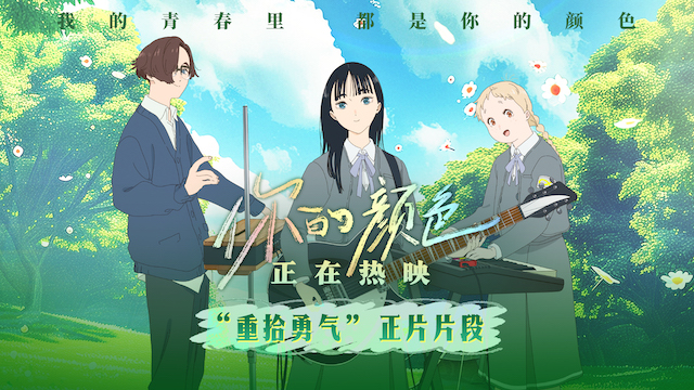 由日本天才女动画导演山田尚子执导的青春治愈动画《你的颜色》目前正在热映,今日发布“重拾勇气”正片片段,片中日暮窦子(铃川纱由 配音)、作永君(高石明里 配音)、影平路易(木户大圣 配音)三人在相处的过程中,被友情治愈的同时,也渐渐收获了直面自己内心的勇气。影片凭借其细腻轻盈的视听风格和温暖治愈的故事,从上映首日就收获了大批观众的好评。有观众表示“故事充满创作力和想象力”“全程像是眼睛呼吸到大口的清新空气”“情绪跟着影片流动,完全沉浸在影片里。”