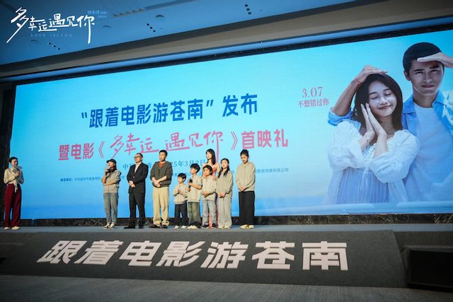 2025年3月2日,由田木泽(田蒙)执导,蓝盈莹、刘奕畅领衔主演,盛一伦、林乐炫主演,贾冰、黄小蕾、范湉湉特别出演的爱情电影《多幸运遇见你》首映礼在苍南盛大举行。作为首部实现"影视+旅游+文创"全链路开发探索的电影作品,本次首映活动不仅现场揭晓了终极海报及文创产品矩阵,更现场宣布在600多年历史的霞关老街为电影定制专属打卡线路,为苍南旅游献上一个新的网红打卡地,把“带着电影游苍南”这一“无形概念”变为“有形之物”,此次活动也同时标志着苍南文旅产业正式迈入"沉浸式文旅消费"新阶段。