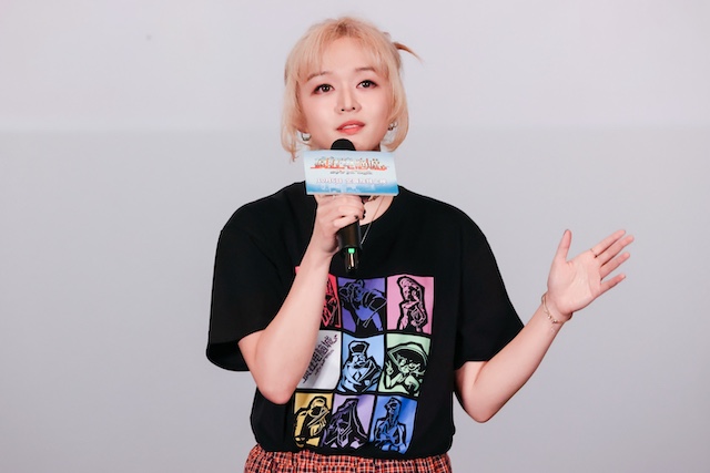 这场沉浸式体验中,音乐同样是不可或缺的重要一环,为现场氛围注入了鲜活张力。金贵晟带来片尾曲《信我所信》歌舞秀,轻快激昂的旋律伴着他磁性的声线响彻全场,“每个人都说我很乐观,我向平凡宣战”的歌词精准呼应影片中扎普的经历;陈明憙登场演唱插曲《坠落》,低沉细腻的声线带着故事感缓缓流淌,将电路城危机下的紧张与角色成长的动容娓娓道来。一快一慢的旋律、一燃一柔的演绎,点燃全场热情。