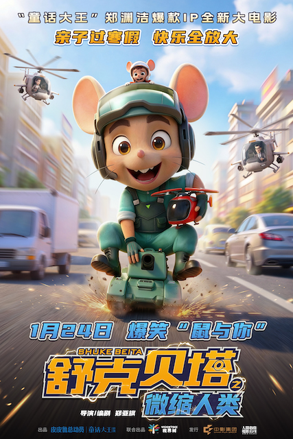 《舒克贝塔之微缩人类》由杭州童话大王影视有限公司出品,视界树影视科技(南通)有限公司联合出品,中国电影产业集团股份有限公司北京国产电影发行分公司、人间指南(上海)影视发行有限公司发行,天津猫眼微影文化传媒有限公司、大麦娱乐(北京)有限公司联合发行,将于2026年1月24日登陆全国院线。这个寒假,让我们相约电影院,感受“放大版”的快乐!
