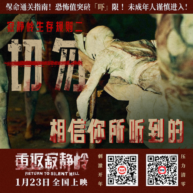 影片此次曝光的“一命通关”版特别视频则为内地观众们提供了“通关”生存规则——“切勿相信你所看到的”,当警报声响起,里世界已然降临,每一处景象都可能是潜藏的陷阱;“切勿相信你所听到的”,声音会指引你,更会欺骗你,唯有相信本能捕捉逃亡信号;“不要直视 TA 们的眼睛”,与这里的任何存在对视,都将坠入恐惧深渊;“禁止窥探这里的秘密”,追寻秘密的人,终将成为秘密的一部分。最重要的是,“不要试图寻找寂静岭的出口”,似乎也在暗示着,只有真正找到重返寂静岭的理由,才有一线生机。
