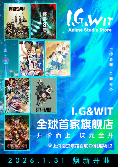 国际知名动画制作公司Production I.G & WIT STUDIO(总部:东京武藏野)官宣,1月31日其全球首家旗舰店将全面焕新升级!为提供更优质的购物与互动体验,店铺将从上海南京东路百联ZX创趣场一层搬迁至二层,并于焕新后以更大空间、更多IP、更全商品、更沉浸互动体验和更丰富的活动迎接广大粉丝,升阶而上,全面升级。