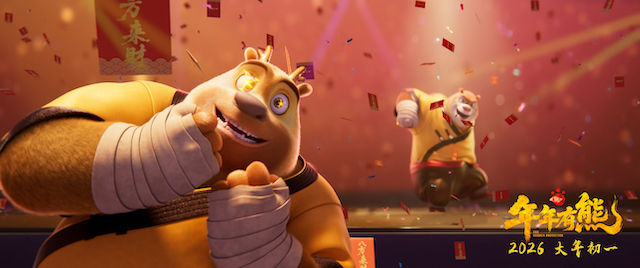 电影《熊出没·年年有熊》今日发布的新春推广曲《幸福拍手歌》充满感染力,伴随着熟悉的曲调,熊大、熊二、光头强以欢快的舞蹈演绎这首经典歌曲,熊强组合曼妙的舞姿如宽粉般诙谐逗趣,边唱边活力四射地与观众隔空互动,“想要天天好运你就拍拍手,想要年年好运你就拍拍手,想要马到成功你就快快拍拍手”。年年声音出镜,一句喜气十足的“接好运喽”,瞬间点燃春节氛围!2026年春节,《熊出没》诚邀大小朋友一同走进影院,和熊强组合一起开启新岁,迎接新春好运!