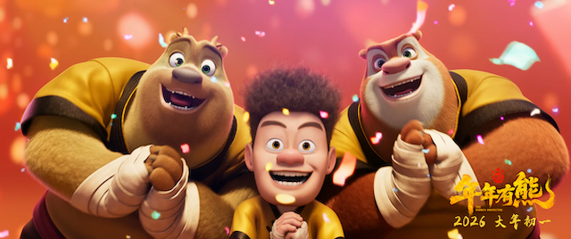MV还创新融入了别具一格的地域特色小巧思,强哥带头献上了一段天津快板:“夸一夸您这好学业,天天顶呱呱,职位薪水翻着倍,钞票哗啦啦”。歌词中熊二仍惦记着吃到蜂蜜的幸福,还被光头强吐槽“忘不了吃”,贴近生活的歌词编排搭配可爱俏皮的角色互动,让这份新春祝福更加落地,直击人心。多年来,熊强三人组始终在新春佳节与观众共贺团圆,2026年新春,更是即将陪伴观众完整走过十二个生肖年。值此特殊节点,《熊出没》大电影以新作《熊出没·年年有熊》紧扣“过年”这一核心主题,用极具中式奇幻感的视觉呈现,讲述最接地气的暖心故事,为大家传递最浓郁的新春年味。2026大年初一,敬请期待!