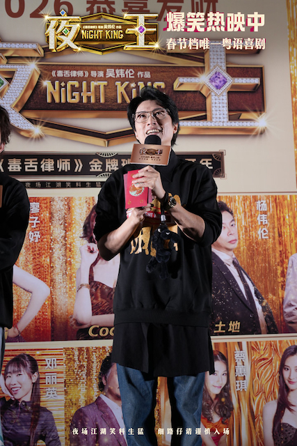 春节档唯一粤语喜剧《夜王》昨日在佛山进行路演,导演吴炜伦、领衔主演黄子华来到现场分享幕后创作,与现场观众共同掀起阵阵笑浪。财神送福气,黄子华也带来特大喜讯,亲自宣布影片将于2月22日(今日)南方上映,2月23日(大年初七)直接全国上映,响应此前全国各地观众的热情呼唤。影片自大年初一中国香港上映,大年初四两广地区(广东省、广西壮族自治区)上映以来收获观众爆赞“值回票价”“笑到飙泪、笑到抽筋”“子华神依然法拉利”。两地口碑票房齐齐飙升,两广地区上映两日累计票房超4000万,中国香港五日累计票房突破4000万。作为首部几乎同步进入内地春节档的纯正粤语喜剧,原汁原味的粤式笑梗带来十足年味,成为不少观众的贺岁爆笑首选。