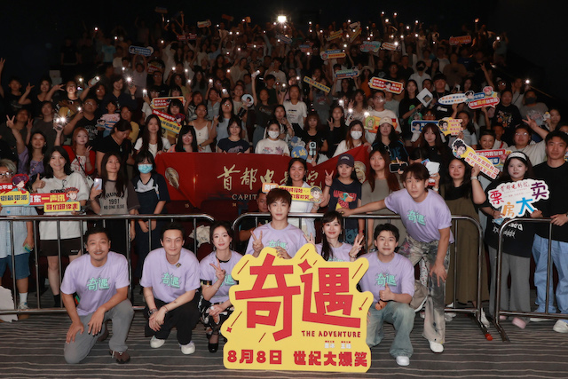 贾冰和李梦在现场则复刻起了影片中“相爱相杀”的相处模式,当李梦提到这是自己第一次演喜剧时,贾冰立马捧场:“太好笑了!”而面对李梦“我不是好看吗”的追问,贾冰也立马给到回应,情绪价值拉满;郑合惠子分享拍摄趣事时提到,拍摄现场也勾起了自己在学生时期拿小画笔给指甲上染色、偷偷摸摸玩手机等回忆,仿佛一下子又回到了十几年前夏日的午后,是很美好的经历;当于洋被问到如何把中年“任日天”这个角色演绎得淋漓尽致时,贾冰则在现场和于洋互相打趣,一位调侃对方是“本色出演”,另一位则说自己其实是学习了贾冰平时的状态,引得现场笑声连连;马旭东则在现场分享,电影《奇遇》不仅是一部讲述青春的电影,更是一部追溯青春的电影,“可能你无法同时拥有青春的感受,但哪怕有一刹那我们回想起过去珍惜的时刻,都觉得都应该给自己一个大大的拥抱,也希望观众们能够在各自人生中遇到更多属于自己的奇遇”。