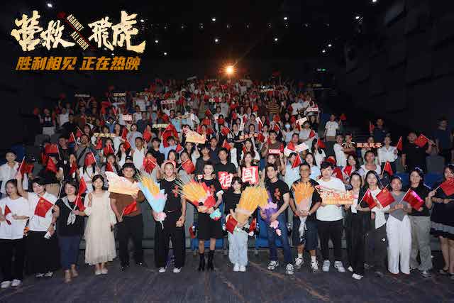 9月3日,电影《营救飞虎》全国公映当天,编剧兼导演刘浩良,领衔主演米切尔·霍格、王丹妮;主演韩陌;特别演出伍允龙现身东莞,与观众展开真挚交流。影片取材自真实历史,凭借解气燃爽的叙事节奏和触动人心的角色塑造,在上映当日就收获众多好评,观众表示“看完电影,心里涌上来的不是沉重,而是一种‘终于解气’的畅快!”影片上映正逢中国人民抗日战争暨世界反法西斯战争胜利80周年纪念日,许多观众选择以“上午观看阅兵,下午观看《营救飞虎》”的方式,度过这一意义非凡的日子,在观影中感受历史、致敬英雄。