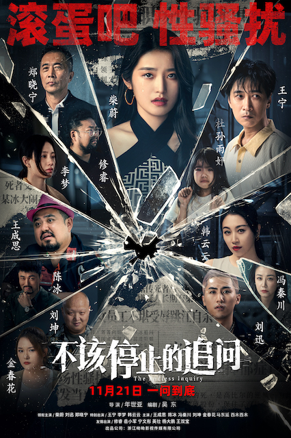 由年世亚导演,吴东编剧,柴蔚、刘迅、郑晓宁领衔主演,王宁、李梦特别出演的反性骚扰电影《不该停止的追问》今日全国公映,并发布“勇揭真相”版预告和“击碎恶行”版海报。在预告中,王菁菁(柴蔚 饰)一直寻找的真相即将到来,性骚扰等恶行侵害也将随之受到应有的惩罚,令人充满了无尽期待;而在“击碎恶行”版海报中,各怀心事的众角色悉数登场,画面的正中心被狠狠击破,表明了创作者们抨击恶行的坚定决心。王菁菁(柴蔚 饰)和王遥(李梦 饰)在影片中受到的误解、凝视和伤害等,唤起了观众深深的共鸣。以王菁菁为代表的女性们,面对性骚扰等恶行时,以绝不妥协的态度进行抗争,不仅使观众感到了慰藉和希望,也将对恶行进行有效震慑,进而引发强烈的社会反思。
