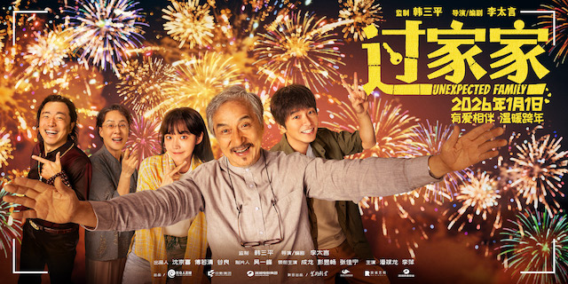 电影《过家家》由沈京喜、傅若清、谷良担任出品人,吴一峰担任制片人,韩三平监制,李太言编剧、导演,成龙、彭昱畅、张佳宁领衔主演,潘斌龙、李萍主演,将于2026年1月1日元旦全国上映。