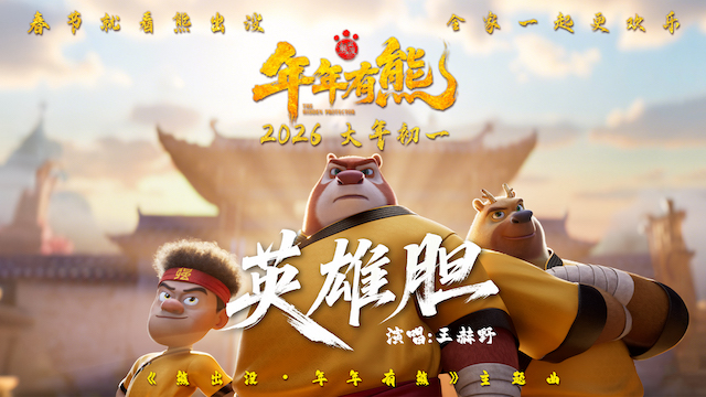 将于2026年大年初一上映的合家欢电影《熊出没·年年有熊》今日发布主题曲MV《英雄胆》,MV以熊强组合视角展开,带领观众见证他们一路训练属性之力、追逐英雄梦的热血历程。该歌曲则由王赫野高燃献唱,“谁不是千锤百炼,换灵光一现”“别笑我做英雄梦,且看我永不言败”,这执着且饱含信念的呼喊,激荡起每个观众心中的热血情怀。