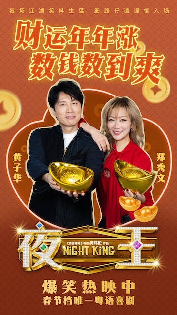 由黄子华、郑秀文领衔主演的春节档唯一粤语喜剧《夜王》昨日在广州进行路演,导演吴炜伦、领衔主演黄子华惊喜现身,领衔主演郑秀文也惊喜现场连线,与黄子华默契“售后”,爆梗频出炒热现场气氛,笑声阵阵点燃观众热情。影片已于大年初一香港正式上映,打破中国香港华语电影首日票房记录。大年初四两广地区(广东省、广西壮族自治区)正式上映,获得首日票房超2000万的优异成绩,更获得观众好评如潮“过年就要看爆笑港片”“纯血粤语真的爆赞”“全场笑到疯,港味浓到化不开”。同时,影片将于明日在佛山进行路演,马年看黑马电影爆笑开年,贺岁以口碑爆款引爆新年。