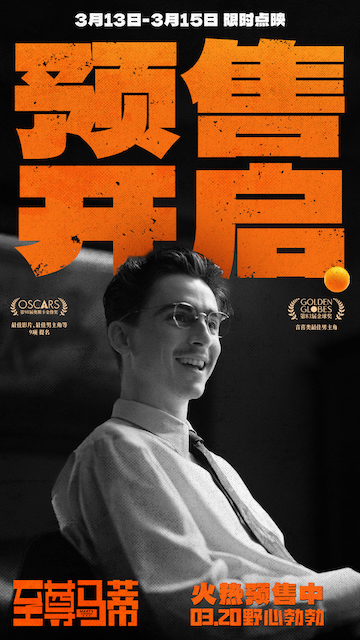 电影《至尊马蒂》预售开启 3月20日正式上映 甜茶演绎孤注一掷者的命运狂想曲