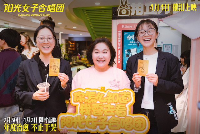 这场跨越银幕的温暖传递并未止步于影厅之内。安心亚、孙淑媚两位演员在上海街头带着“你怎么知道我要去看阳光女子合唱团”挂牌宣传电影,没有丝毫距离感,笑着和来往路人热情打招呼,大方安利影片的治愈故事,并且和过往路人暖心合影留念,不少人都被她们的真诚打动。